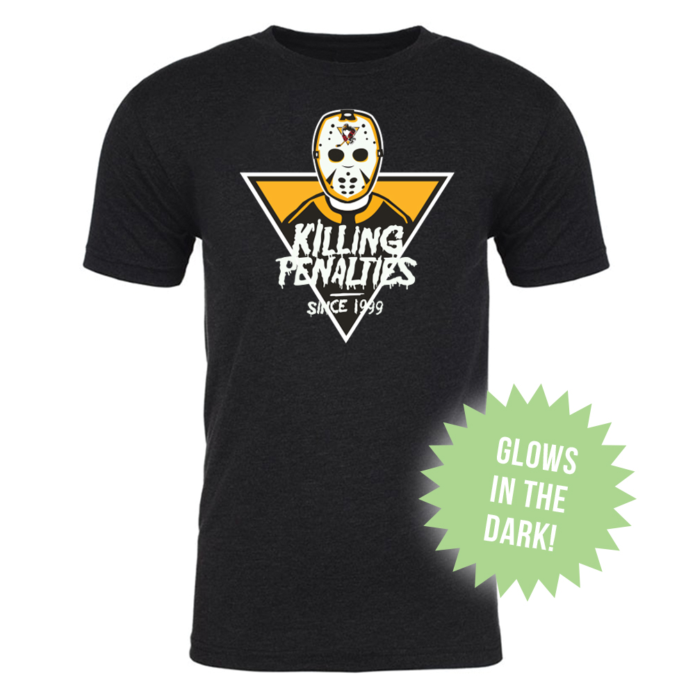 Wilkes-Barre/Scranton Penguins Killing Penalties Glow in the Dark Short Sleeve T-Shirt/Men's Cut/Black/Glow in the Dark Screen Printed Full Color Killing Penalties Graphic w/  Wordmark/100% Cotton