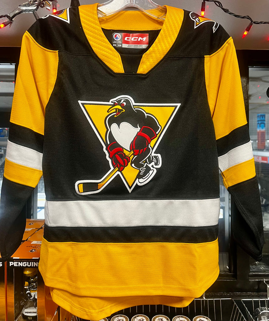 Wilkes-Barre/Scranton Penguins Youth CCM Premier Replica Jersey/Black/Front Tackle Twill Embroidered WBS Penguins Primary Logo/Right Shoulder-WBS Penguins Primary Patch Logo & Left Shoulder- Pittsburgh Penguins Patch