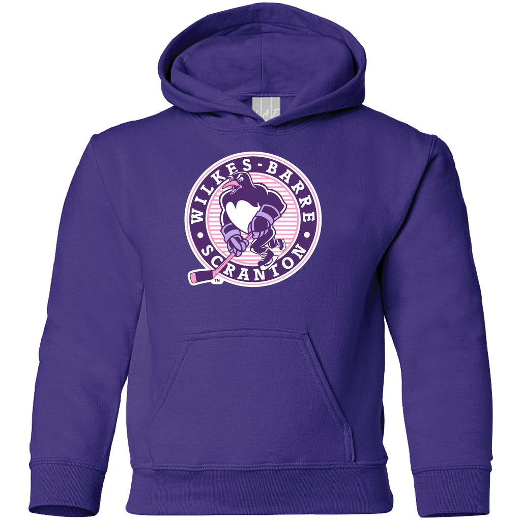 Wilkes-Barre/Scranton Penguins Youth Original Logo Purple Hoodie/Dark Purple/Purple-Pink Screen Printed Original Logo/60% Cotton/40% Polyester