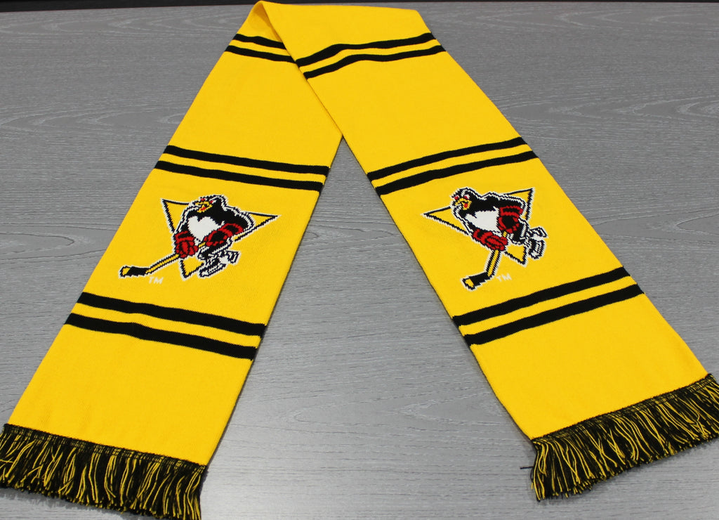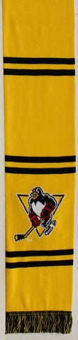 Wilkes-Barre/Scranton Penguins Wizard Scarf/Sunflower Yellow/Black Stripes/Sunflower Yellow & Black Fringe/High Definition Full Color Primary Logo & Wordmark/100% Acrylic
